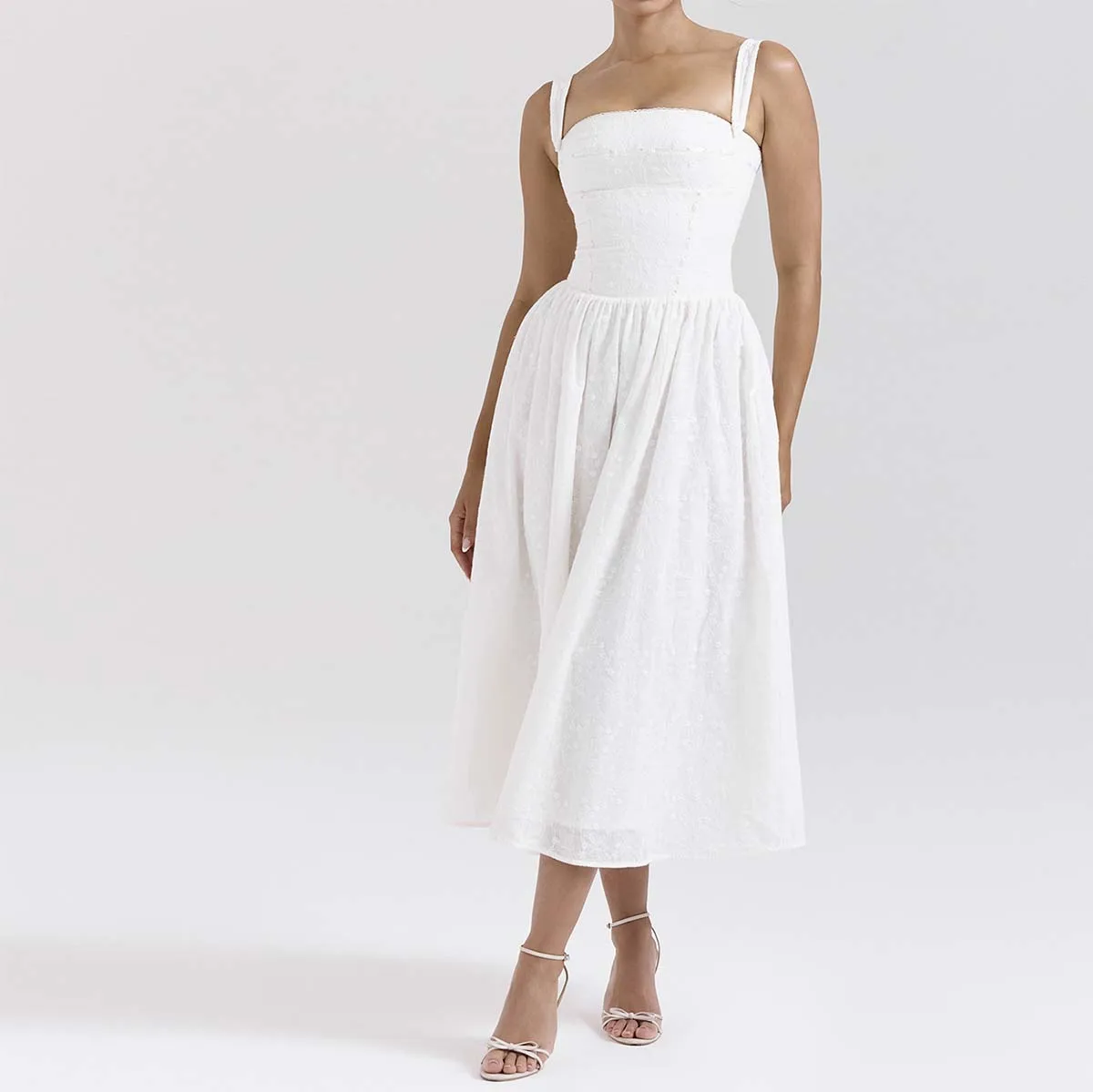 Lovely White Broderie Anglais Midi Sundress Oem A Breezy Summer Essential Women Custom Clothing Factory