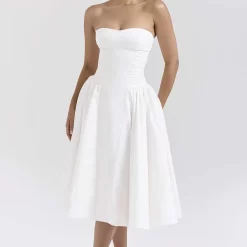 Charming White Cotton Strapless Midi Sundress Oem Perfect For Warm Days Women Custom Clothing Factory