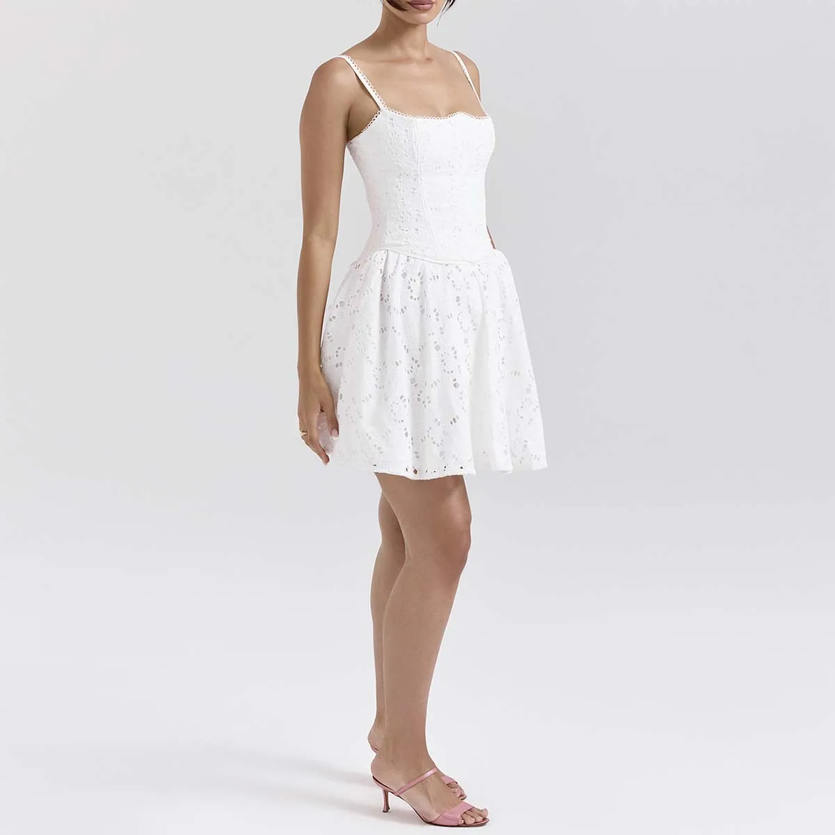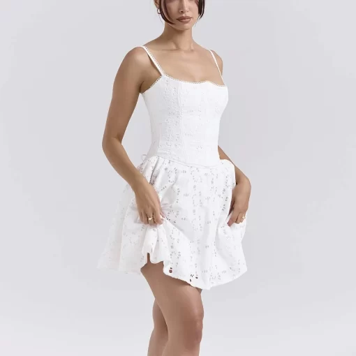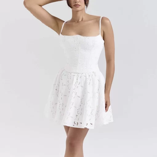 Sophisticated White Broderie Anglais Mini Dress Oem A Timeless Piece Women Custom Clothing Factory